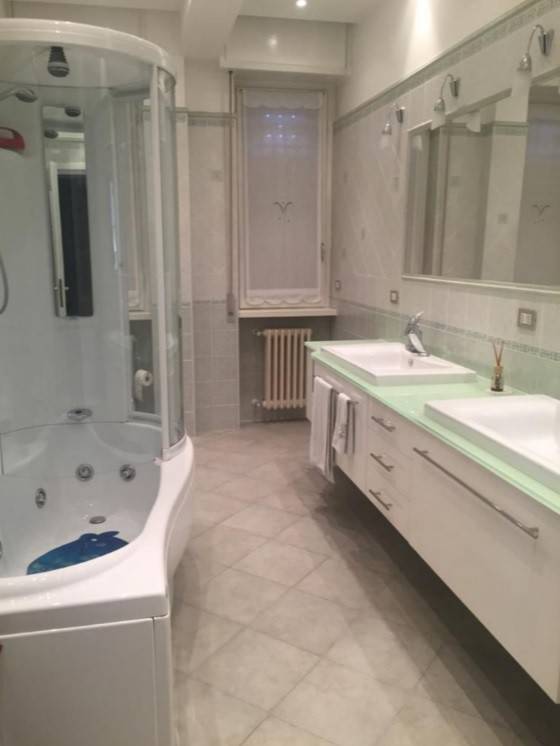 Al piano primo un generoso appartamento di 4 locali con doppi servizi e cucina abitabile di 35 mq,